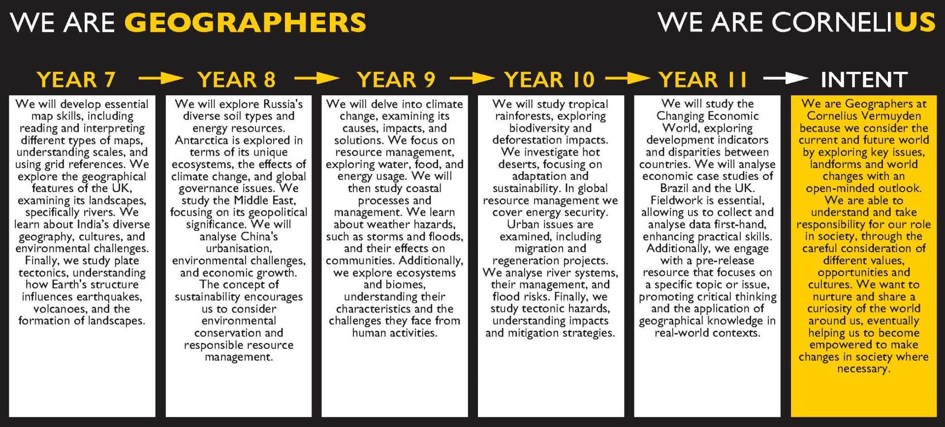 Why are resources – specifically energy – unevenly spread across the globe? | When studying Global Resource Management, students gain comprehensive knowledge about the distribution and management of the Earth's natural resources, including water, energy, and food. They understand the challenges and solutions related to resource depletion, sustainability, and uneven distribution. Skills developed include critical thinking, data analysis, and problem-solving, enabling students to evaluate the impact of resource use on the environment and society. They will learn to interpret various case studies including a hydro-micro scheme in Peru. | Students will gain a thorough understanding of key concepts such as sustainability, resource distribution, and the environmental impact of resource use. They will hold an ability to explain the significance of different types of resources (renewable and non-renewable) and interpret such data on choropleth maps. Students will hold an awareness of the ethical considerations and global impact of resource management decisions. | Assess students' understanding of key concepts, terminology, and theories related to resource management. Include questions requiring interpretation of graphs, charts, and case studies to evaluate students' analytical skills. Ask students to write structured answers (6 and 9 mark) that demonstrate their ability to argue, analyse, and apply knowledge to real-world scenarios. There will be formative and summative assessments in this term. |