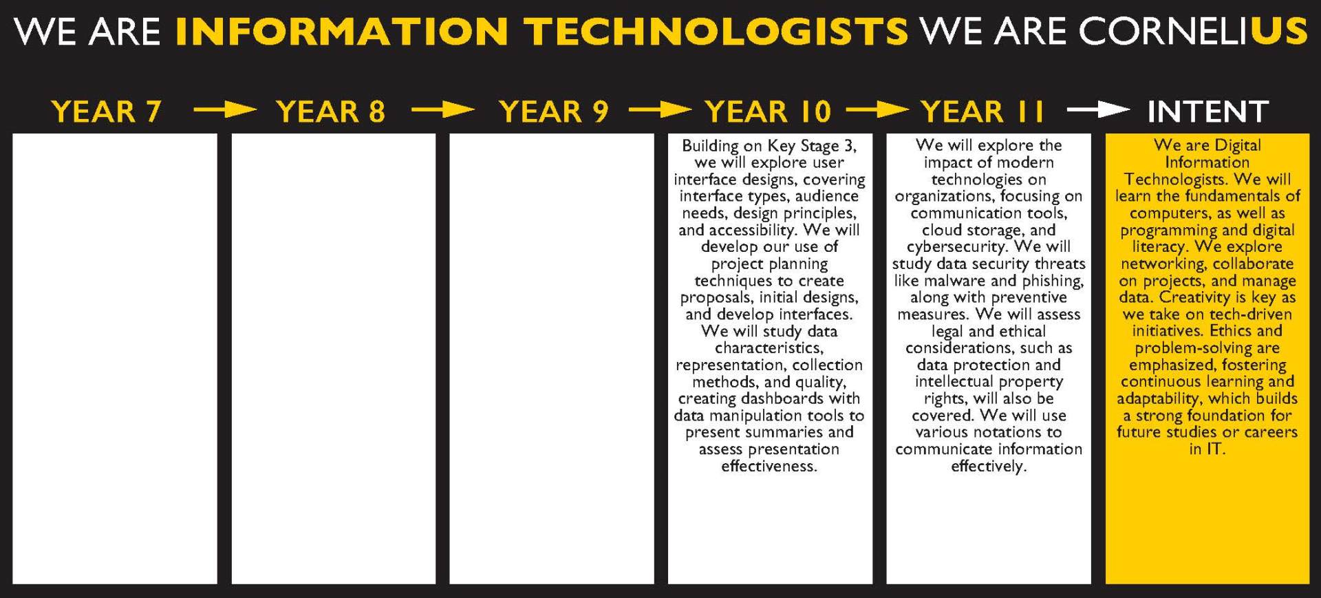 ICT & Computing is recognized and valued by all employers and universities. The wide range of skills and knowledge fostered by the subject allows students to develop as individuals. Most universities offer courses in ICT & Computing, providing students with the opportunity for further development.