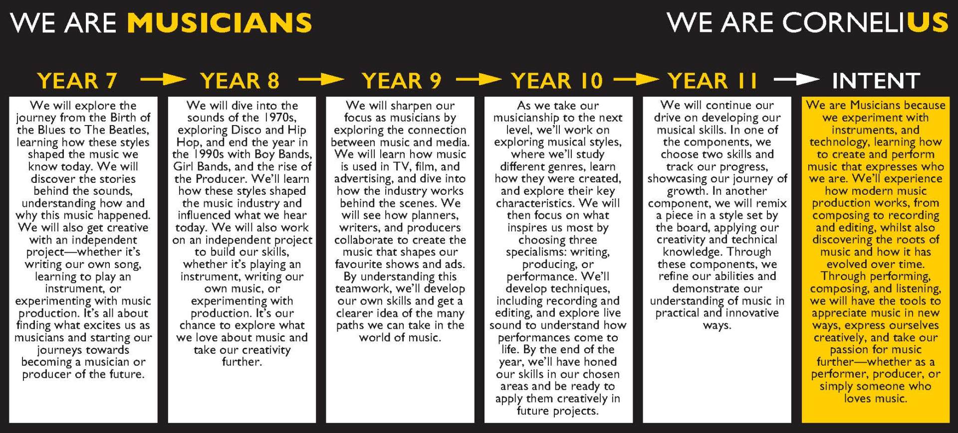 Skills Those choosing music as an option in year 10 will extend their knowledge by working on a mixdown using internal processing techniques. These are skills required for BTEC. |